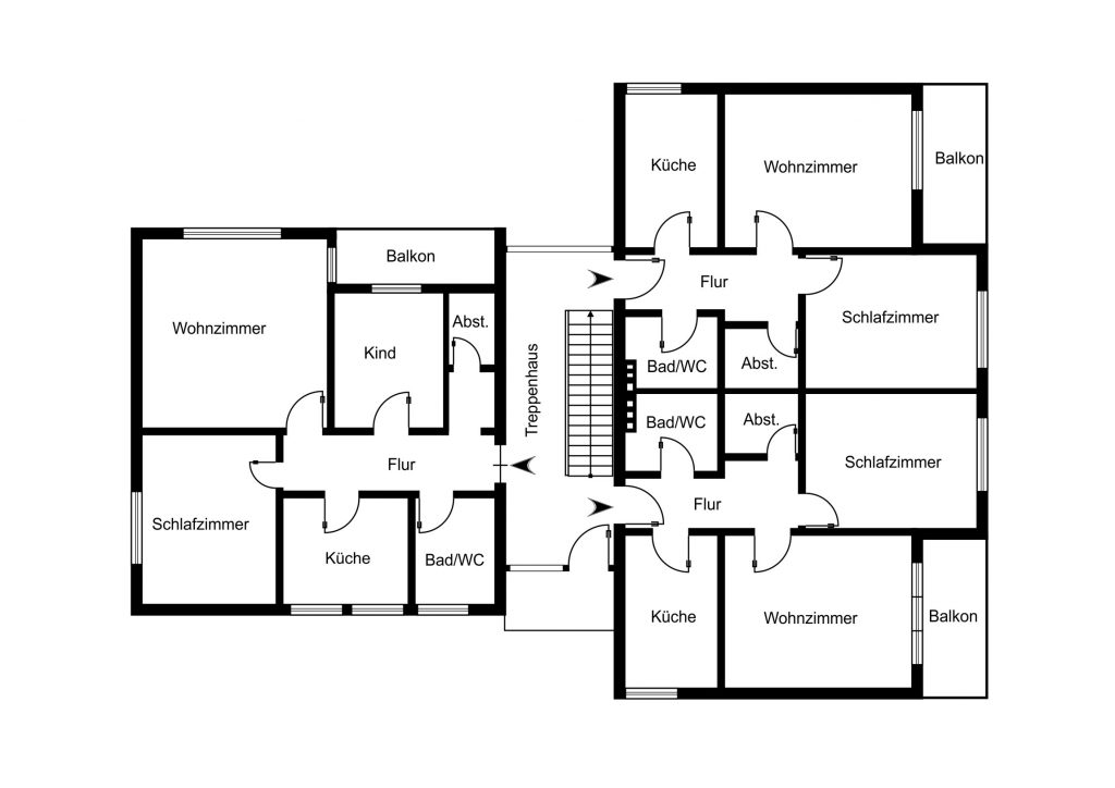 Obergeschoss | 3 Zimmer | ca. 75 m² mit Balkon → 249.000 €